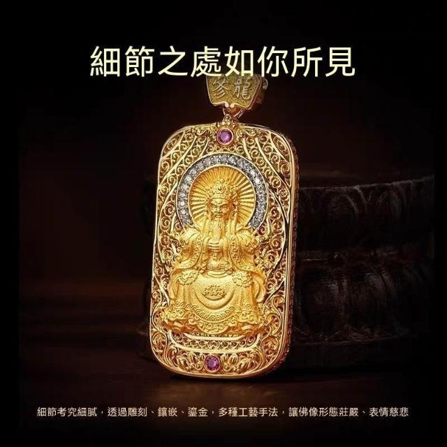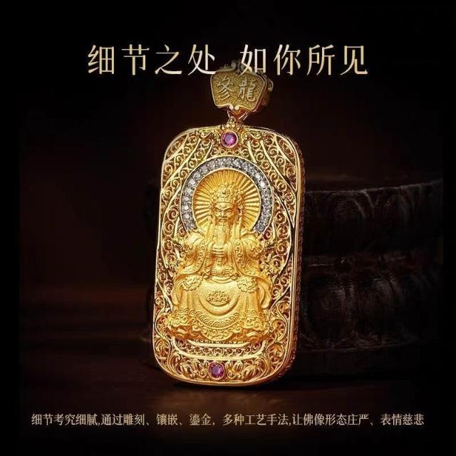 復古國風五臺山龍王五爺吊墜黃銅鍍金賜福項鍊民族風玄學掛件
