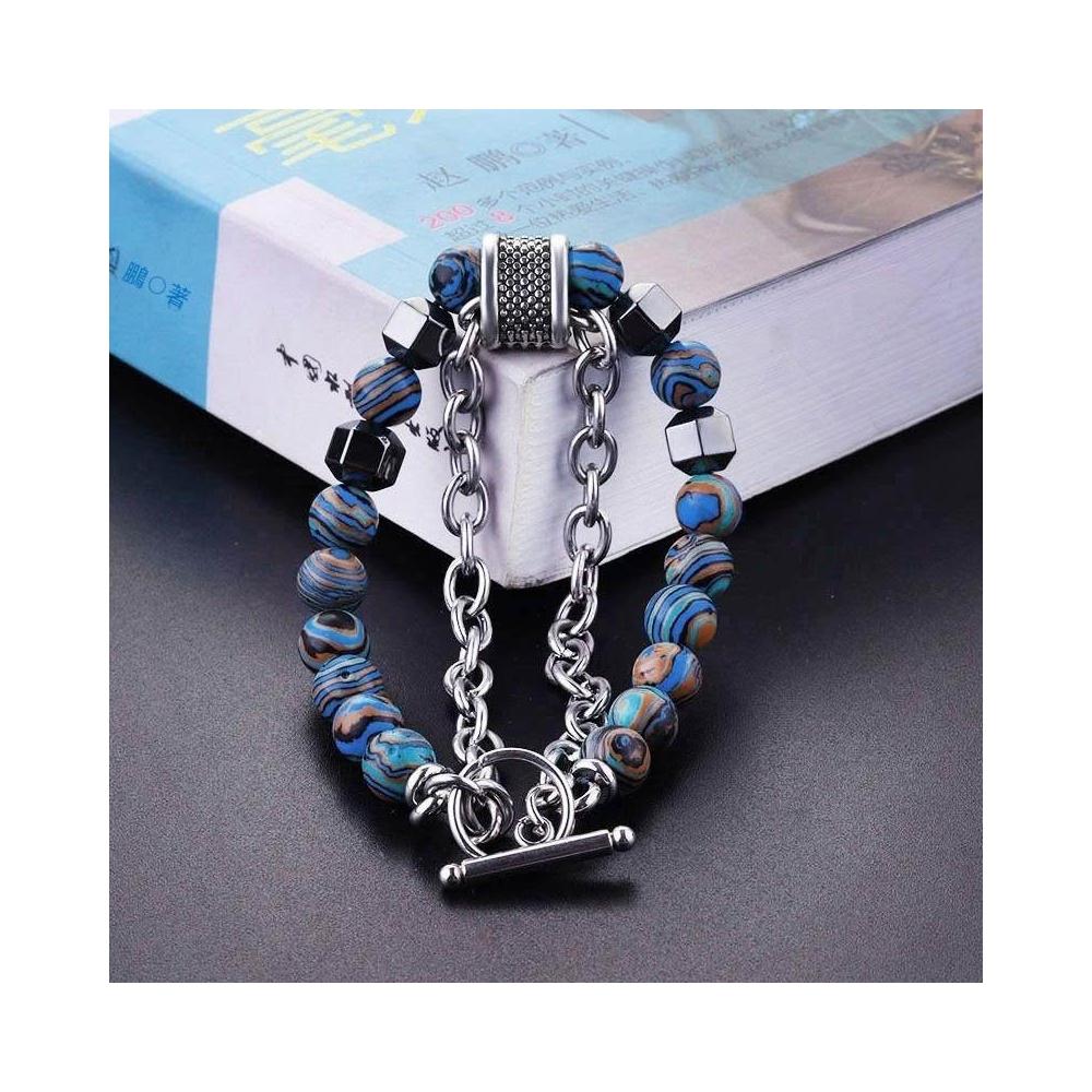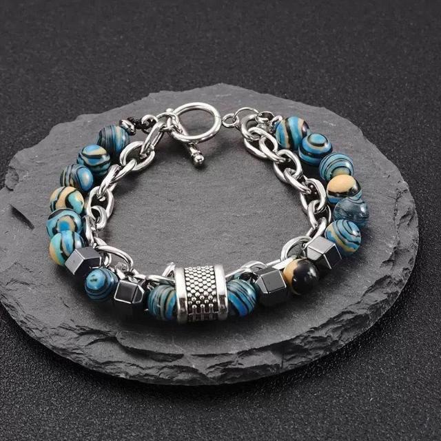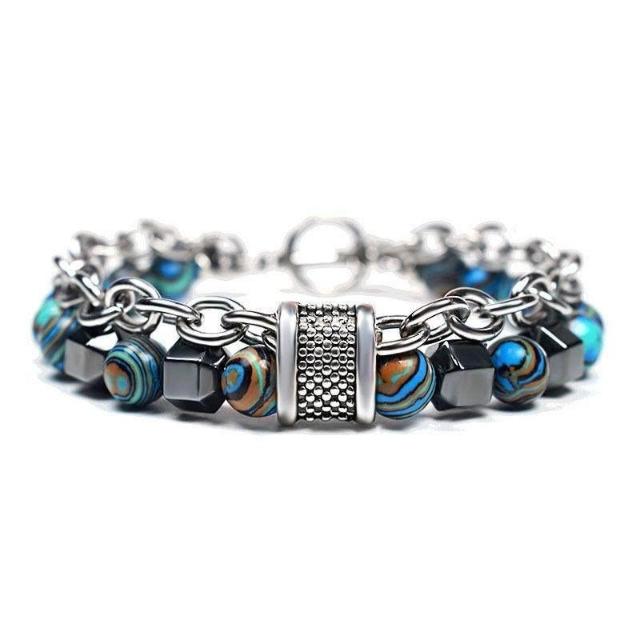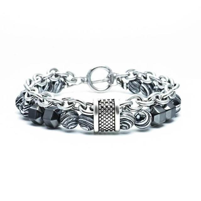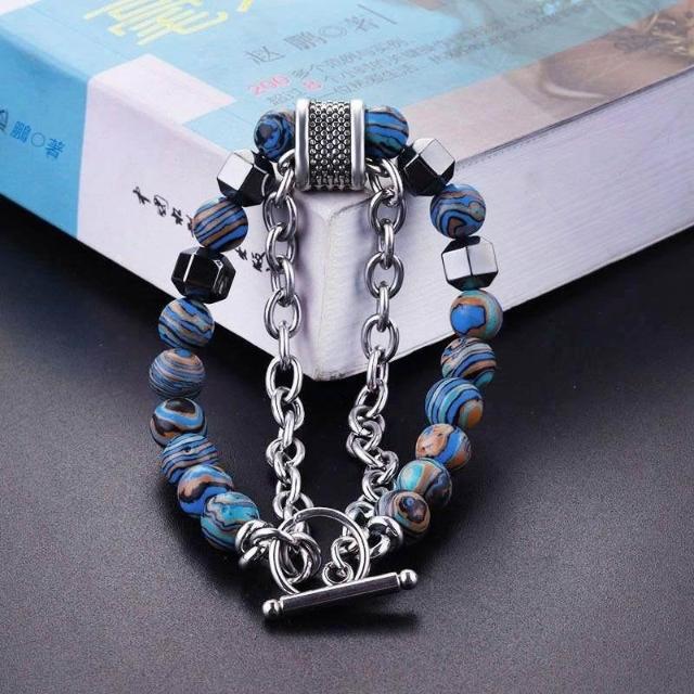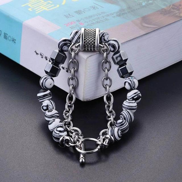 響尾雙層手鍊ins小衆設計高級感雙鏈條拼接撞色串珠OT扣男士手鍊