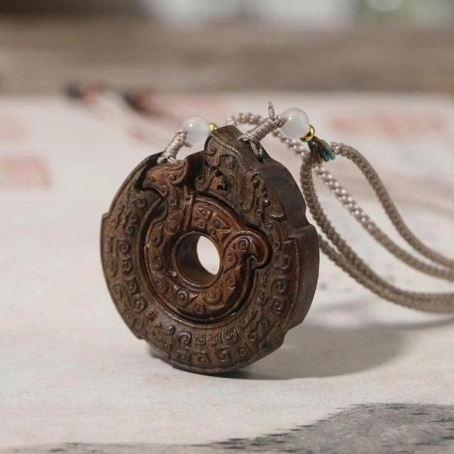 沉香龍鳳佩大師之作毛衣掛件情侶脖掛吊墜中國風沉香木掛飾