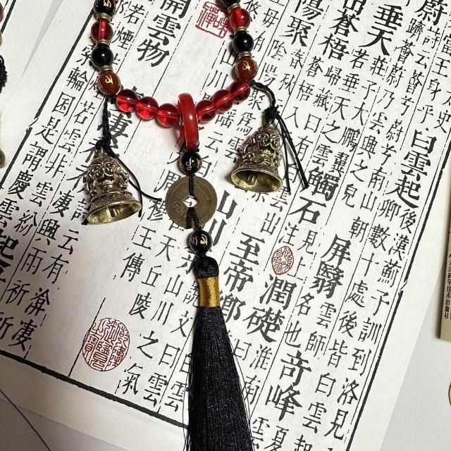 新中式爆款道詭異仙山鬼花錢李火旺印象手鍊新中式鈴鐺手串手持