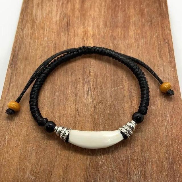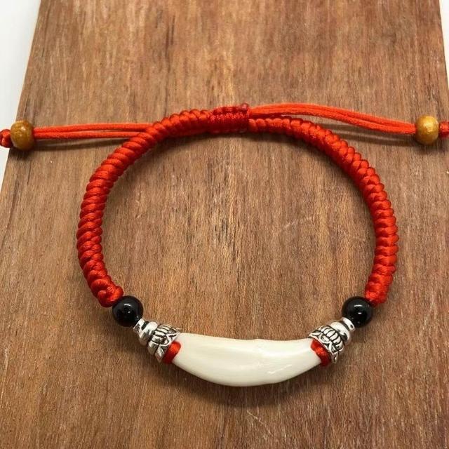 狗牙齒真牙嬰兒兒童成人手工編織手繩手鍊男女本命年牙齒飾品
