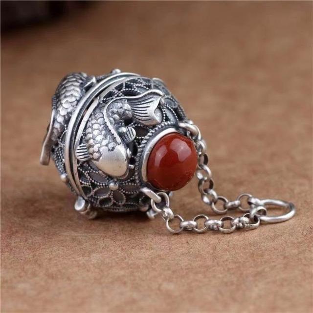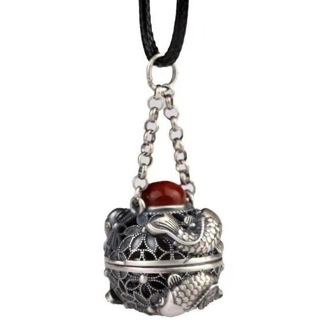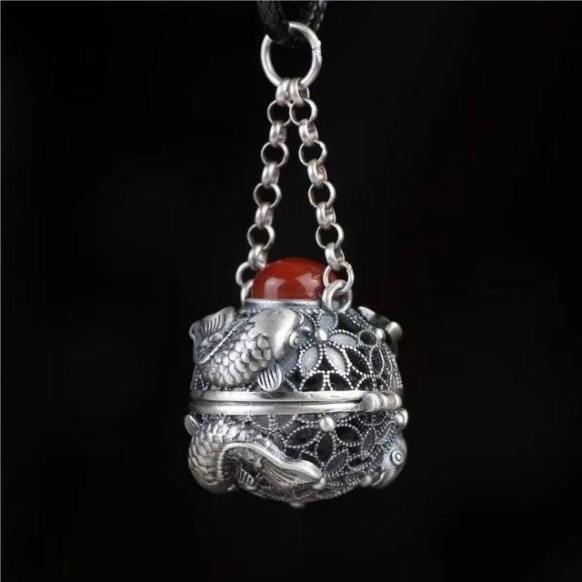 鏤空連年有餘噶烏盒香囊球復古宮廷鑲創意項鍊吊墜掛件女藏族紀念