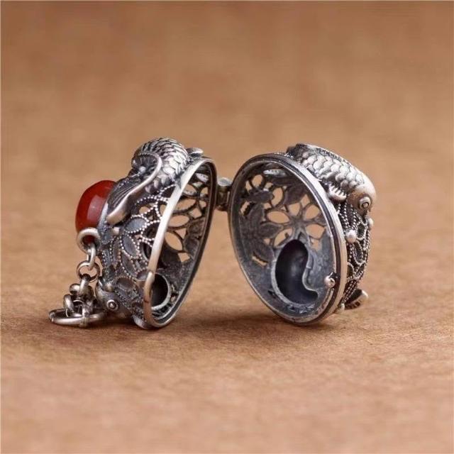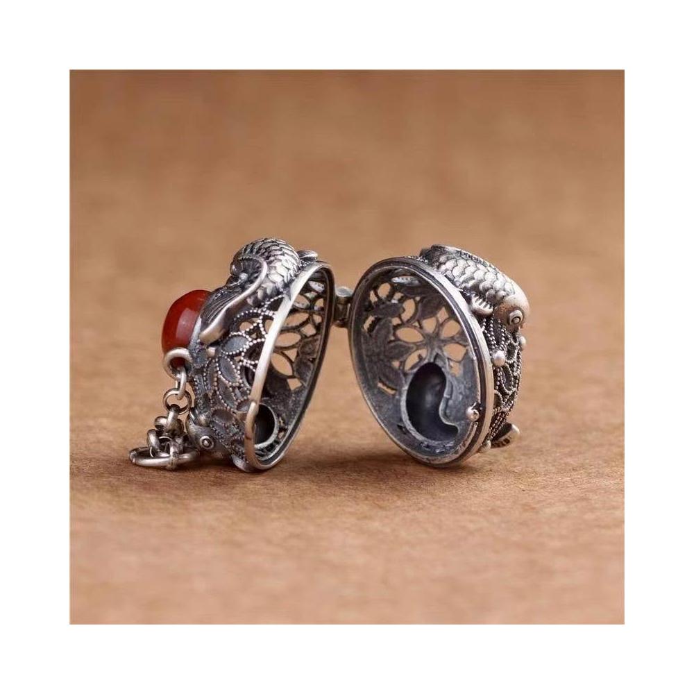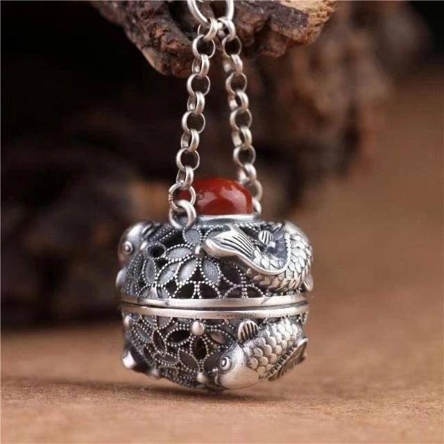 鏤空連年有餘噶烏盒香囊球復古宮廷鑲創意項鍊吊墜掛件女藏族紀念