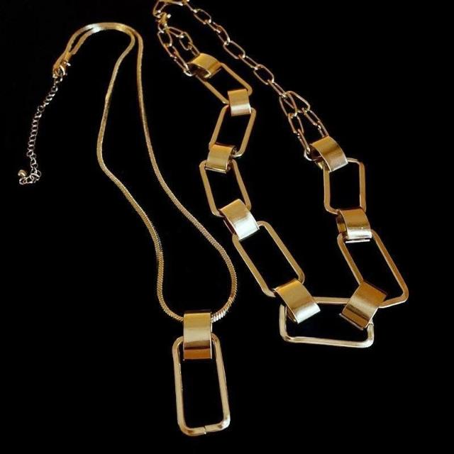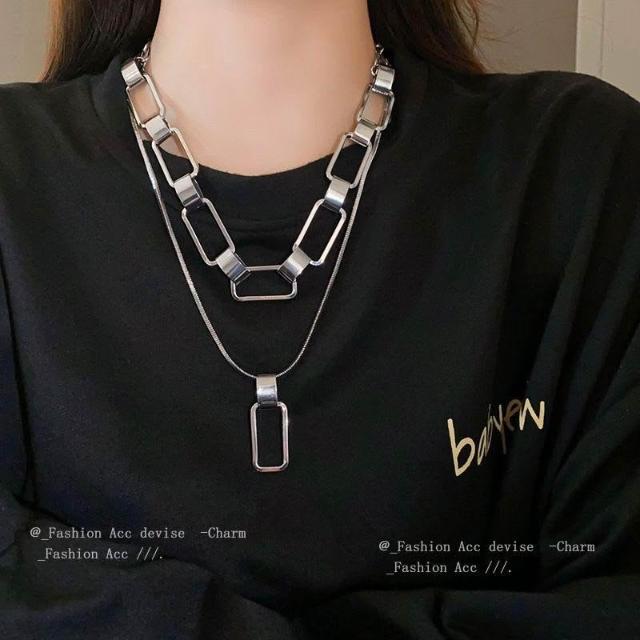 金屬長方鏈條幾何雙層項鍊歐美誇張冷淡風毛衣鏈小衆氣質百搭飾品