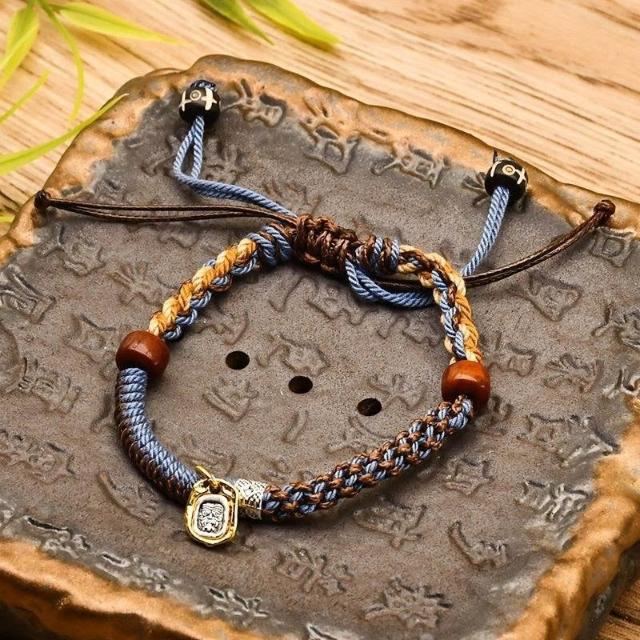 全手工編織藏式手繩文玩手鍊手搓棉繩編繩民族風寓意手飾可調節