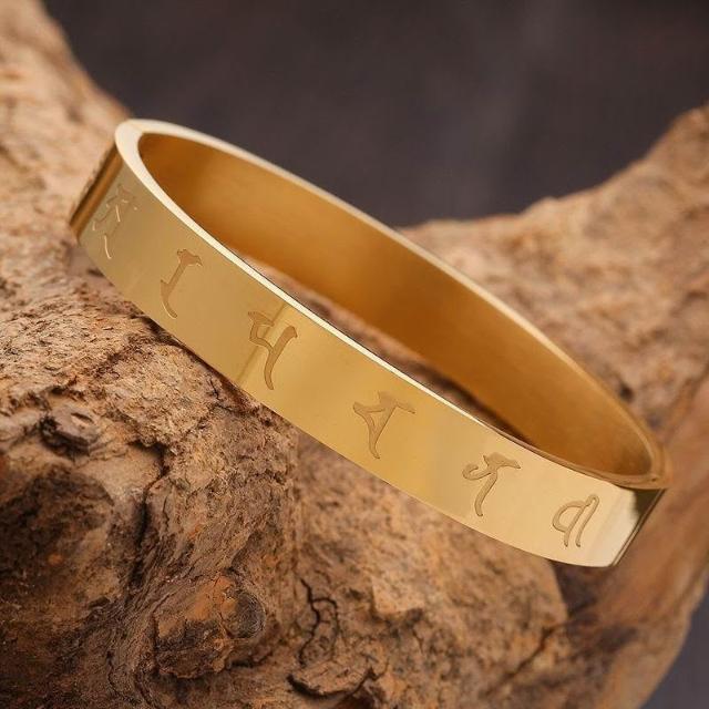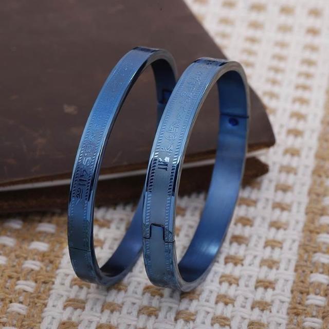 結緣鈦鋼藍藥師手鐲佛教經文鐲子男女款保平安護身符情侶卡扣手鍊