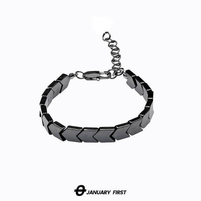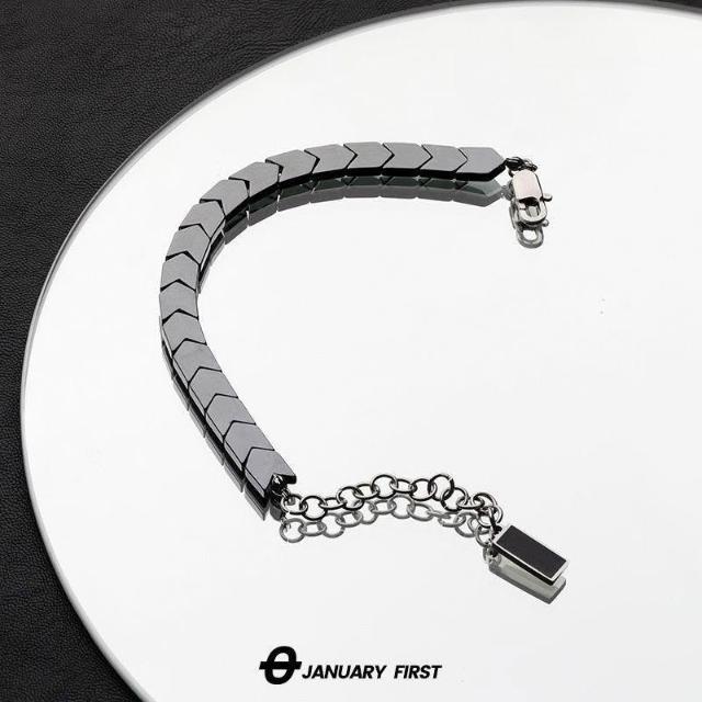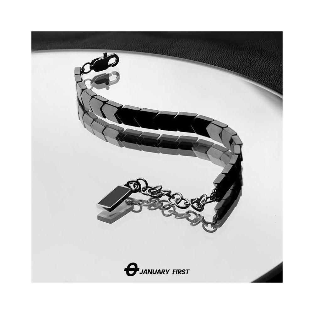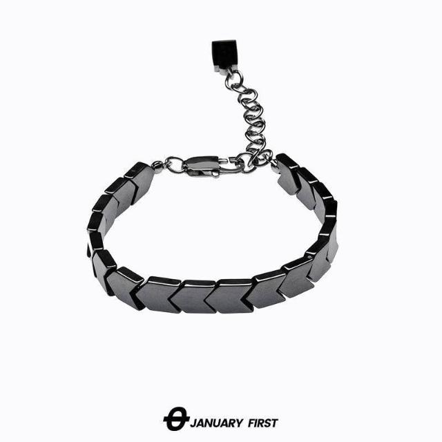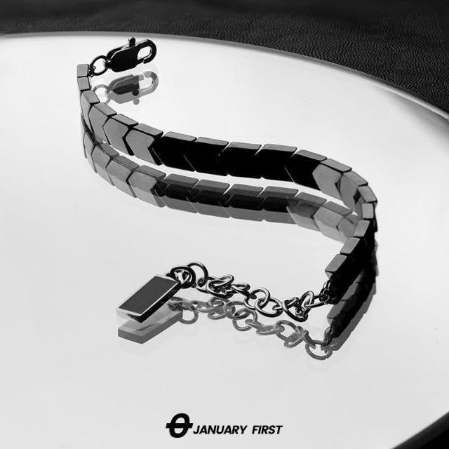 新款黑膽石手鍊男款潮流ins小衆設計高級感冷淡風不掉色嘻哈手飾