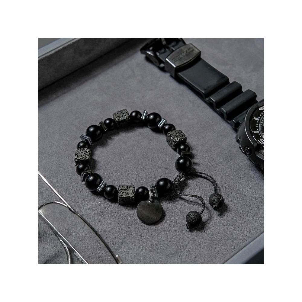 2025年新款潮黑曜石男士手鍊 時尚潮流個性民族風火山石情侶手串