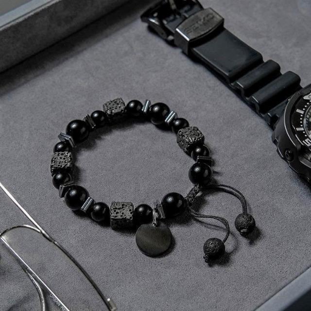2025年新款潮黑曜石男士手鍊 時尚潮流個性民族風火山石情侶手串