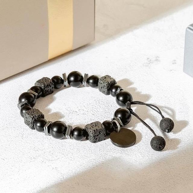 2025年新款潮黑曜石男士手鍊 時尚潮流個性民族風火山石情侶手串