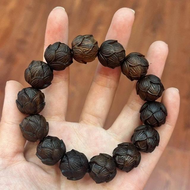 越南沉香蓮花佛珠手串木質雕刻文玩飾品情侶款送朋友禮物老料