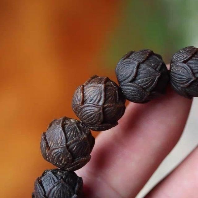 越南沉香蓮花佛珠手串木質雕刻文玩飾品情侶款送朋友禮物老料