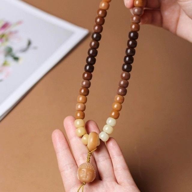 漸變風化菩提手串菩提根手持老型桶珠佛珠手鍊搭配寶寶佛吊墜配飾