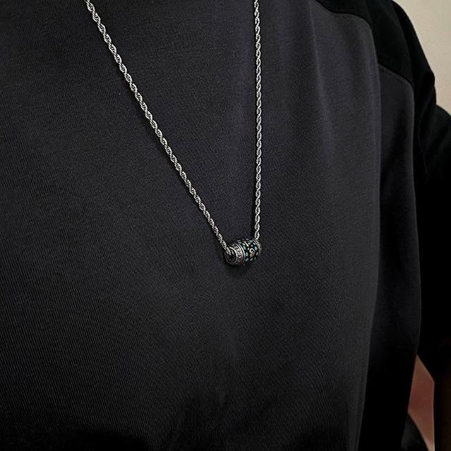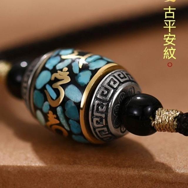 復古藏傳六字真言轉運珠項鍊天珠吊墜男女通用潮款輕奢鏈掛繩