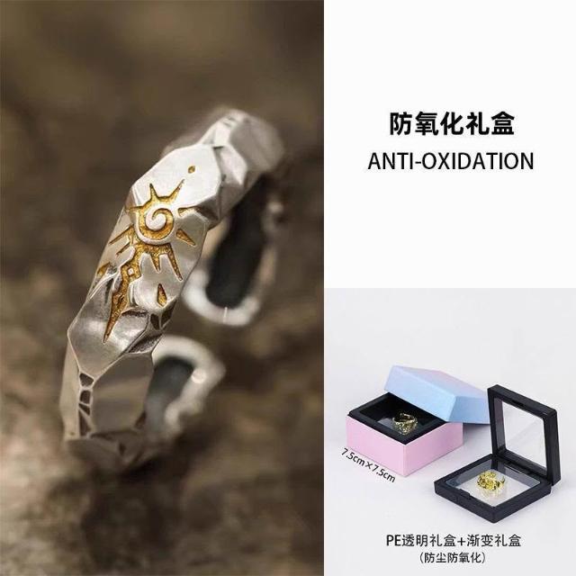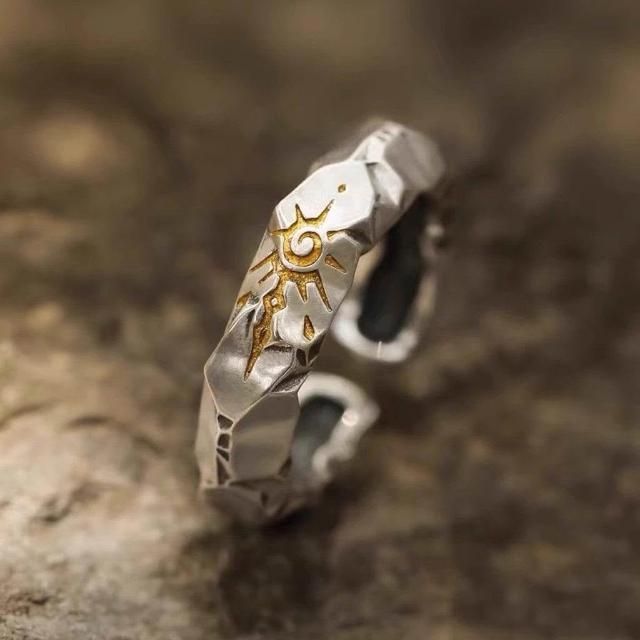 許願石自律戒指潮牌銀飾男生鍍銀高級感男款男士獨特男戒民族風