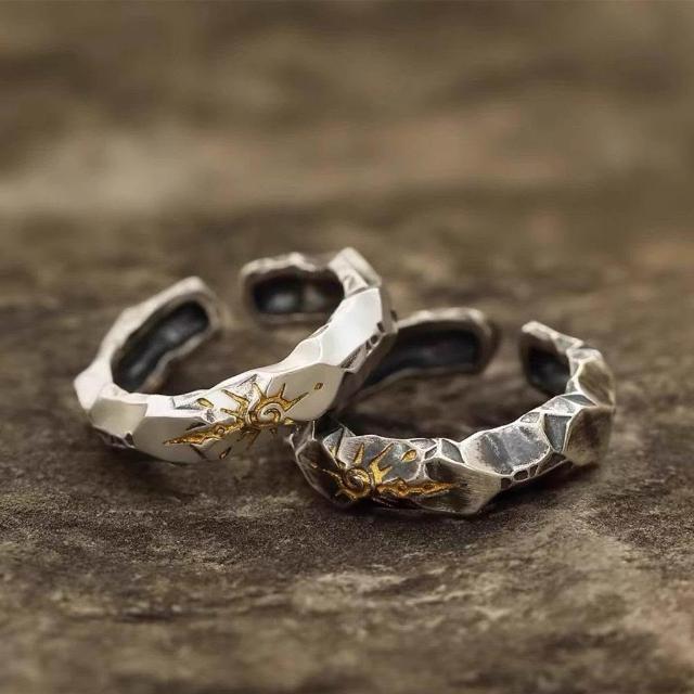 許願石自律戒指潮牌銀飾男生鍍銀高級感男款男士獨特男戒民族風