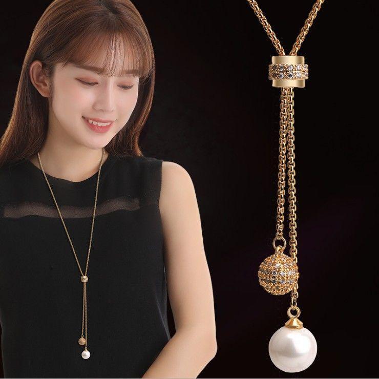 百搭毛衣鏈高檔時尚新配飾秋冬韓版簡約流蘇珍珠掛鏈子長款項鍊女