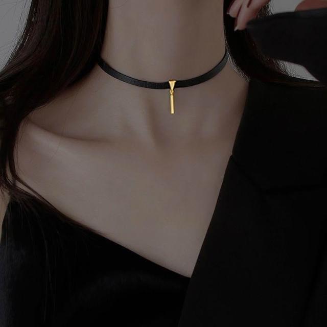 925銀choker復古黑皮繩項圈可調節項鍊女ins冷淡風新款氣質脖頸飾