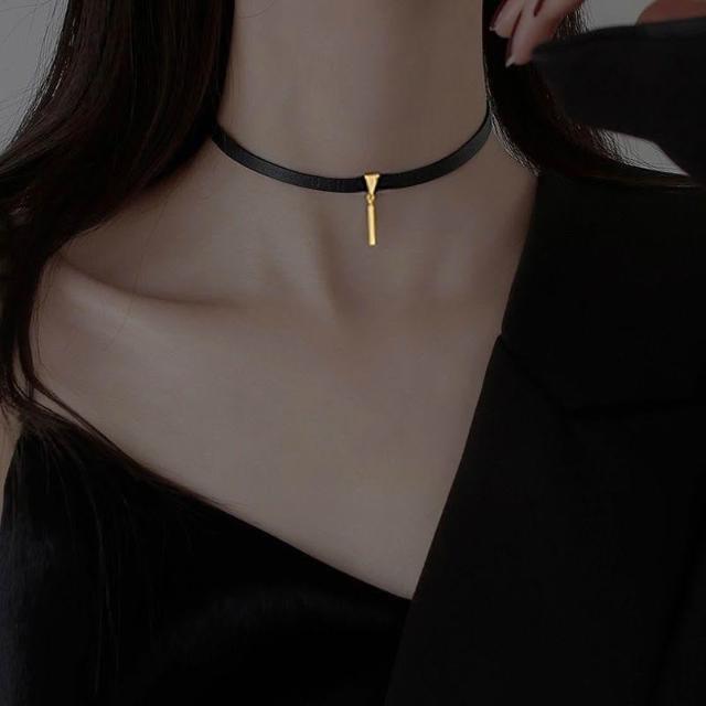 925銀choker復古黑皮繩項圈可調節項鍊女ins冷淡風新款氣質脖頸飾