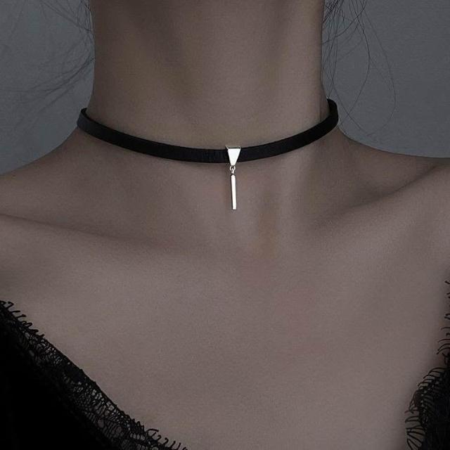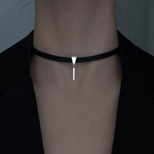 925銀choker復古黑皮繩項圈可調節項鍊女ins冷淡風新款氣質脖頸飾