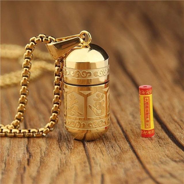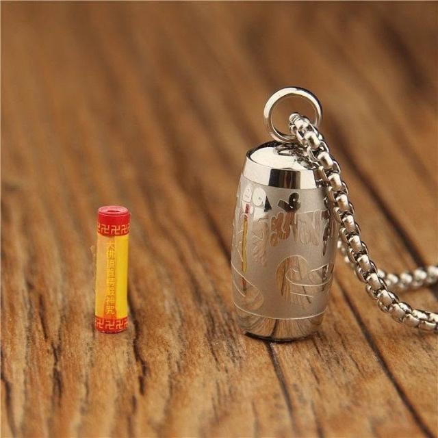 鈦鋼防水瓶六字真言楞嚴吊墜項鍊隨身男女款飾品掛件可打開裝東西