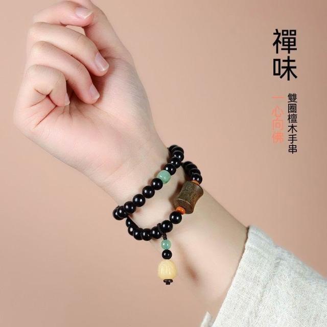 綠檀手串閩仙木質文玩雙圈款手串復古民族文藝中國風小衆一男一女