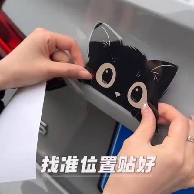 爆款劃痕遮擋小車貼偷瞄黑貓貼紙經典車貼防水汽車電動車摩托車貼