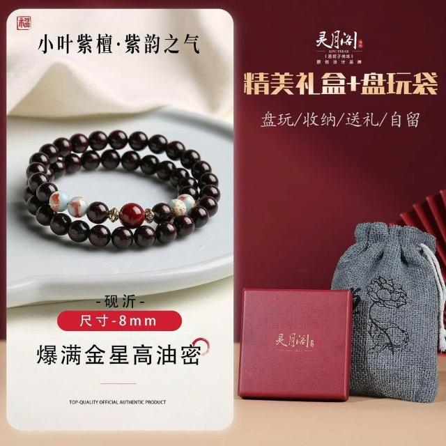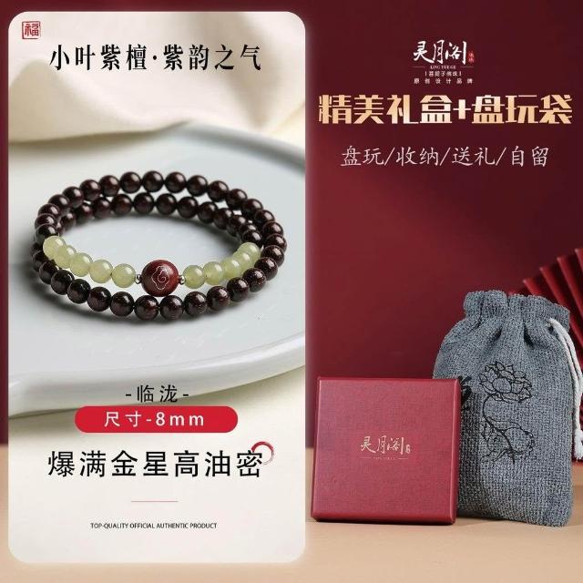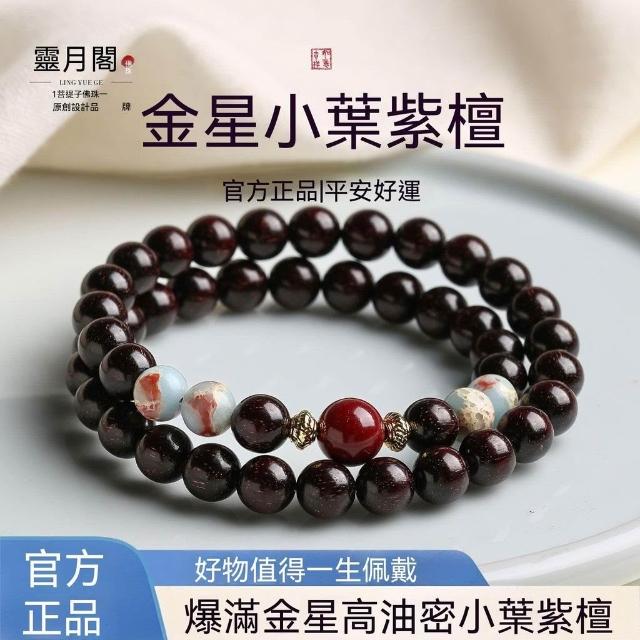 靈月閣小葉紫檀手串男新中式手持雙圈盤玩手鍊女檀香轉運佛珠文玩