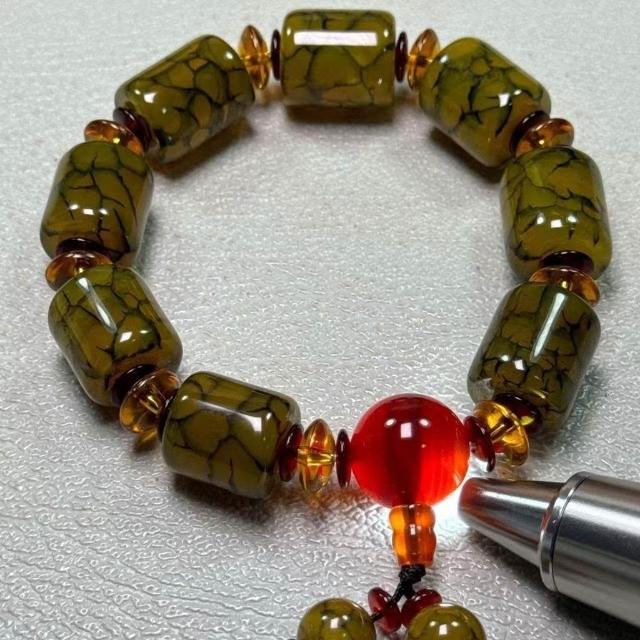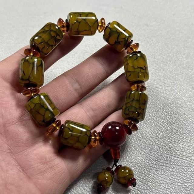 藏式經脈龍紋路路通瑪瑙手鍊民族風時尚大氣