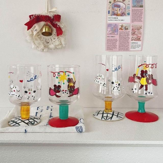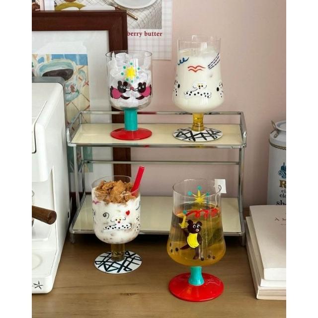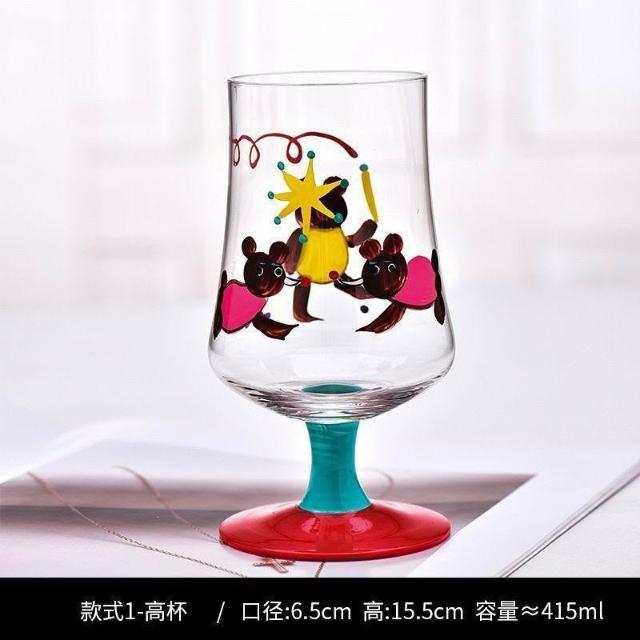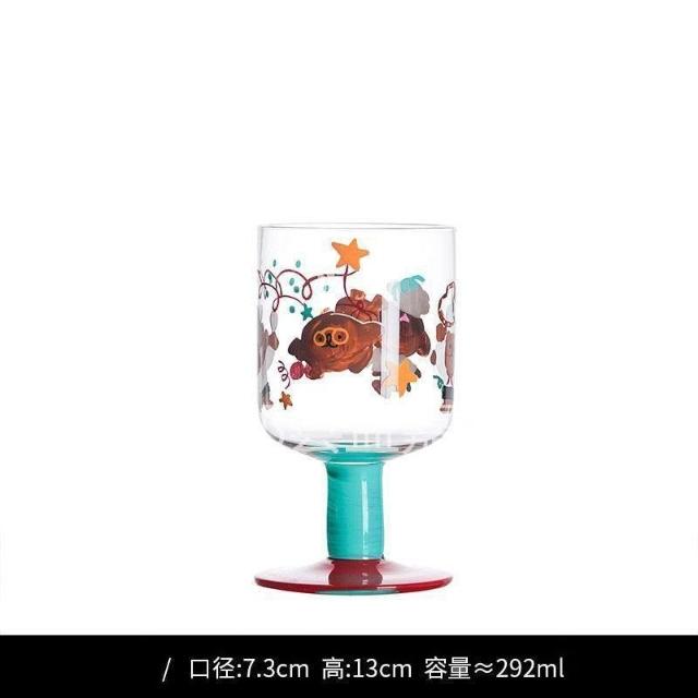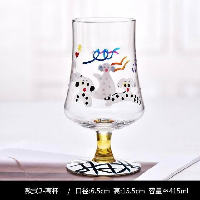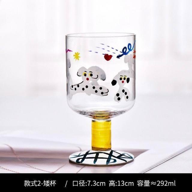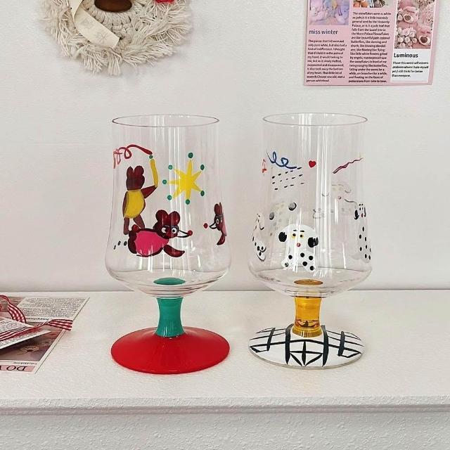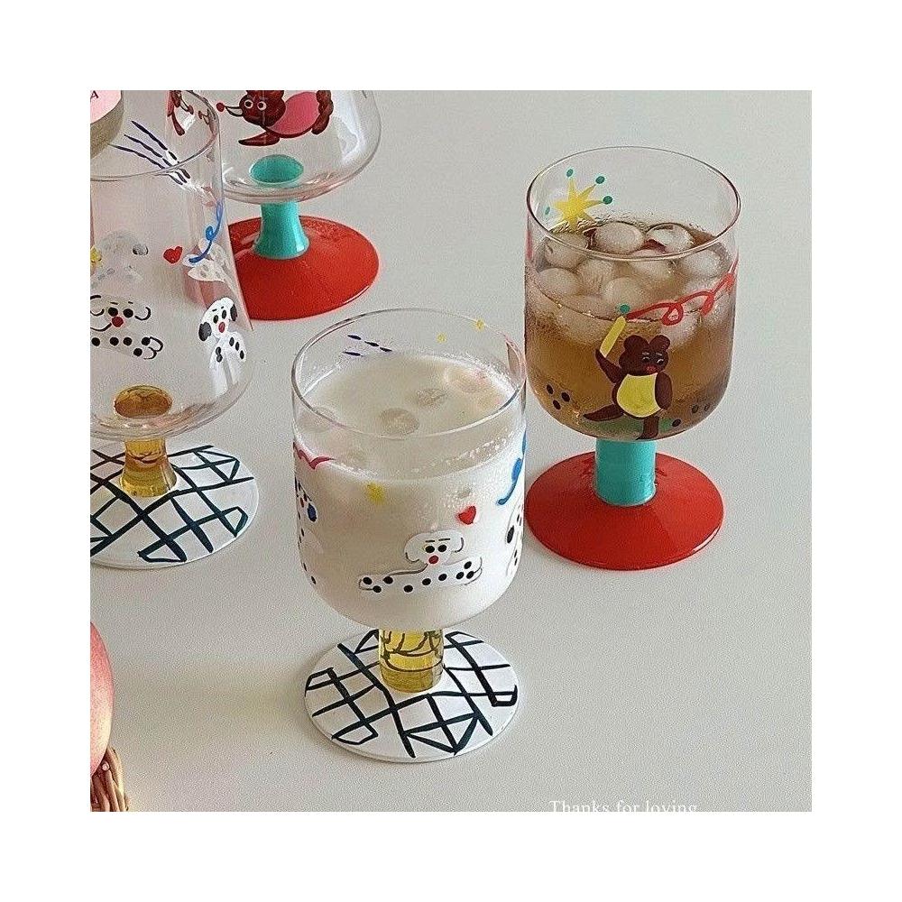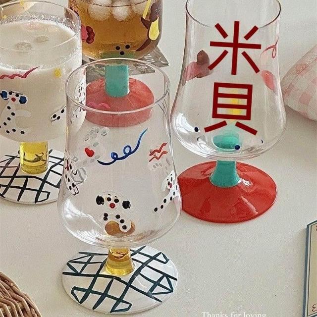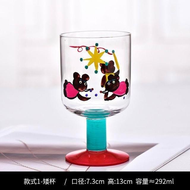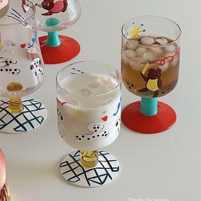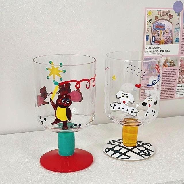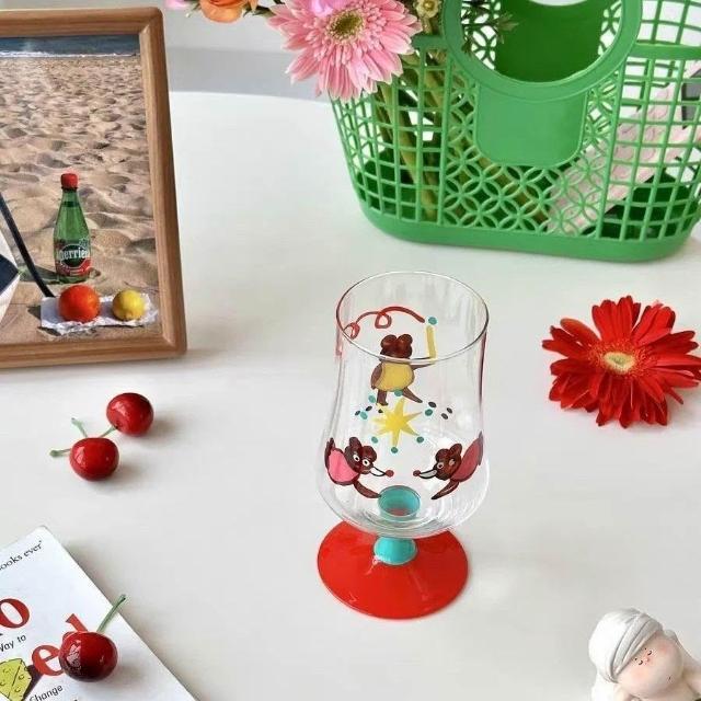 可愛ins手繪小熊玻璃高腳杯家用玻璃杯果汁飲料酒杯小衆水杯