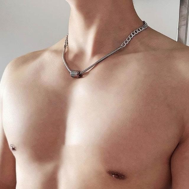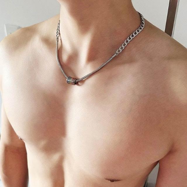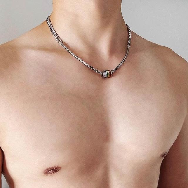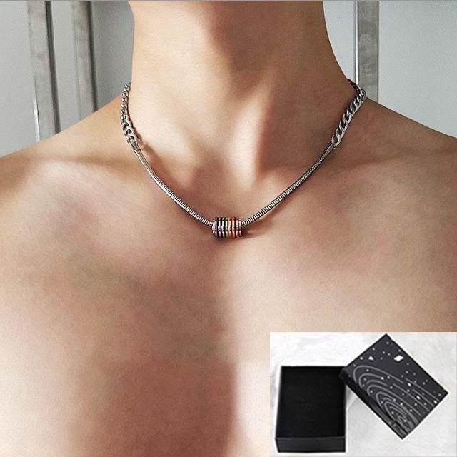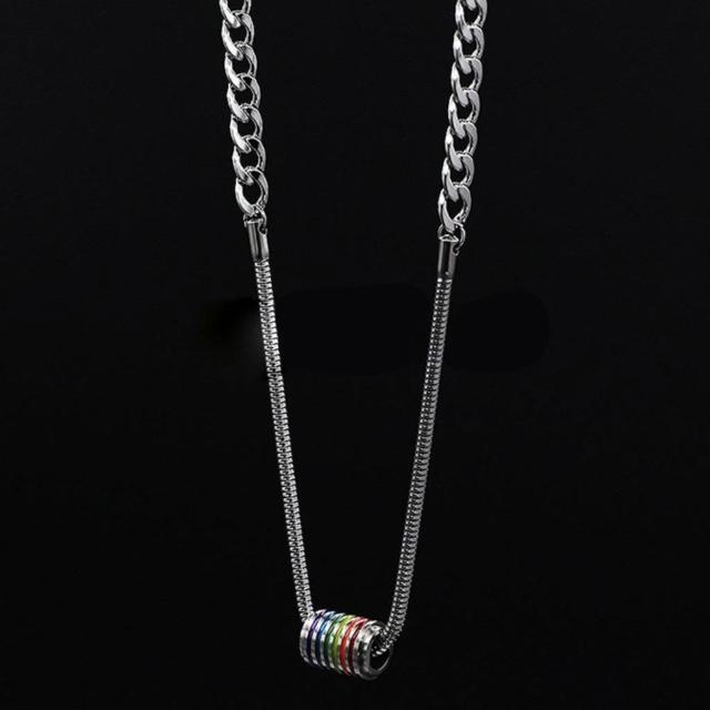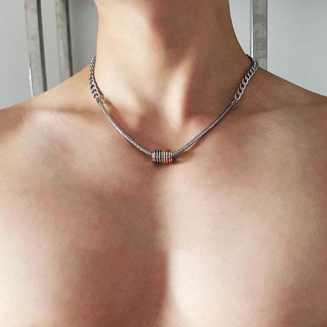 小衆設計美式彩虹轉運拼接鈦鋼項鍊男潮帥氣高級感嘻哈個性鎖骨鏈