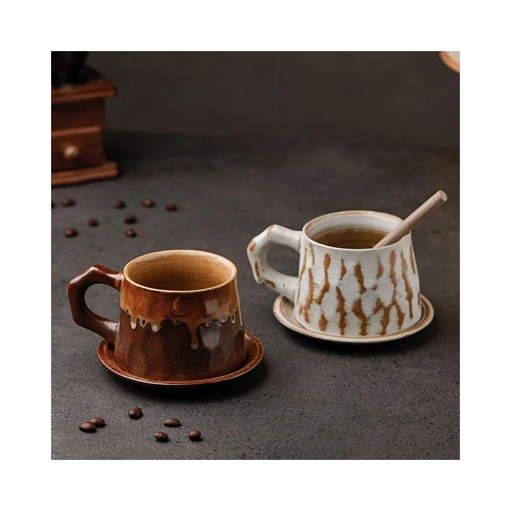ins 風日式復古陶瓷手工做舊粗陶創意盃子意式拿鐵拉花咖啡杯水杯