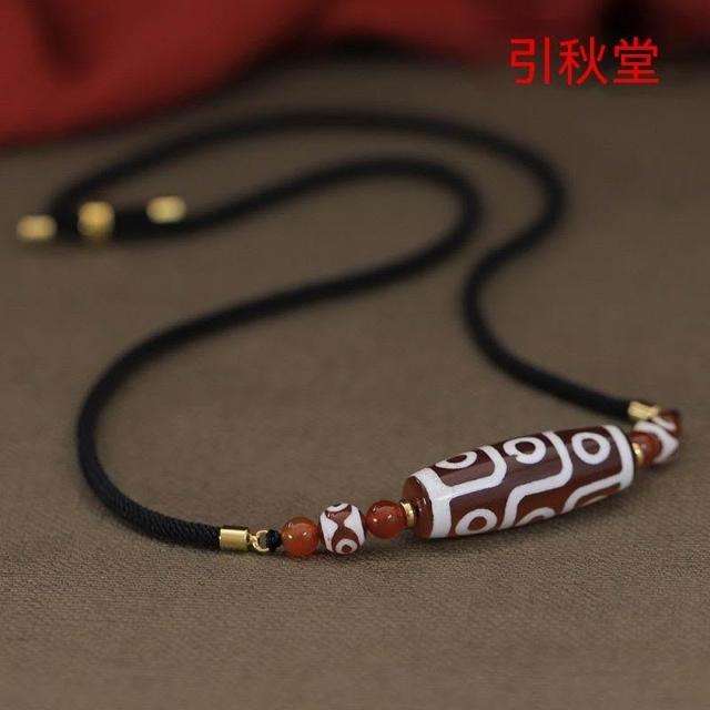 天然西藏真品九眼天珠吊墜瑪瑙項鍊復古民族風男女款瑪瑙掛繩配飾
