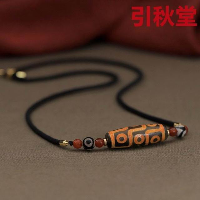 天然西藏真品九眼天珠吊墜瑪瑙項鍊復古民族風男女款瑪瑙掛繩配飾