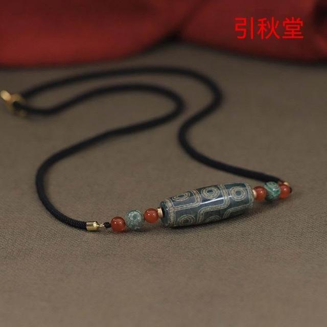 天然西藏真品九眼天珠吊墜瑪瑙項鍊復古民族風男女款瑪瑙掛繩配飾