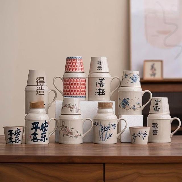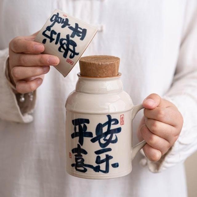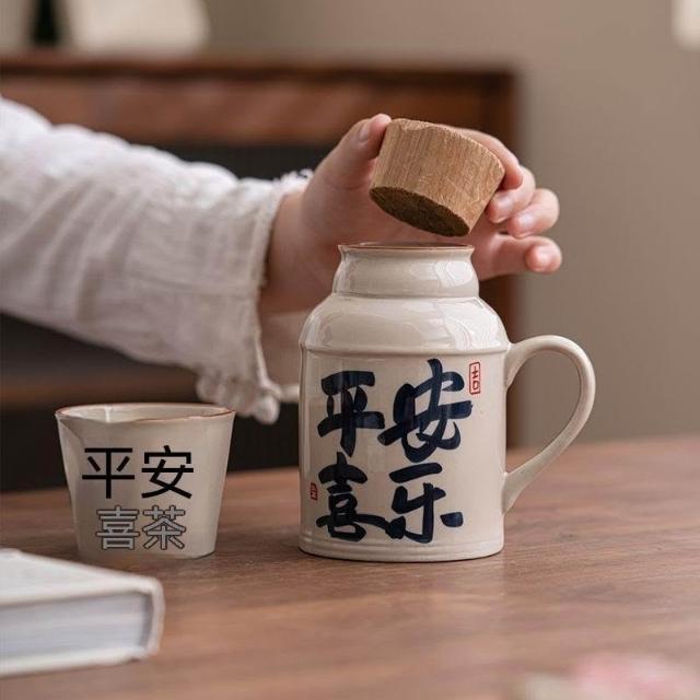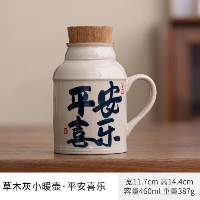 草木灰小暖壺馬克杯帶蓋茶杯創意水杯辦公室大容量燜泡茶杯保溫壺