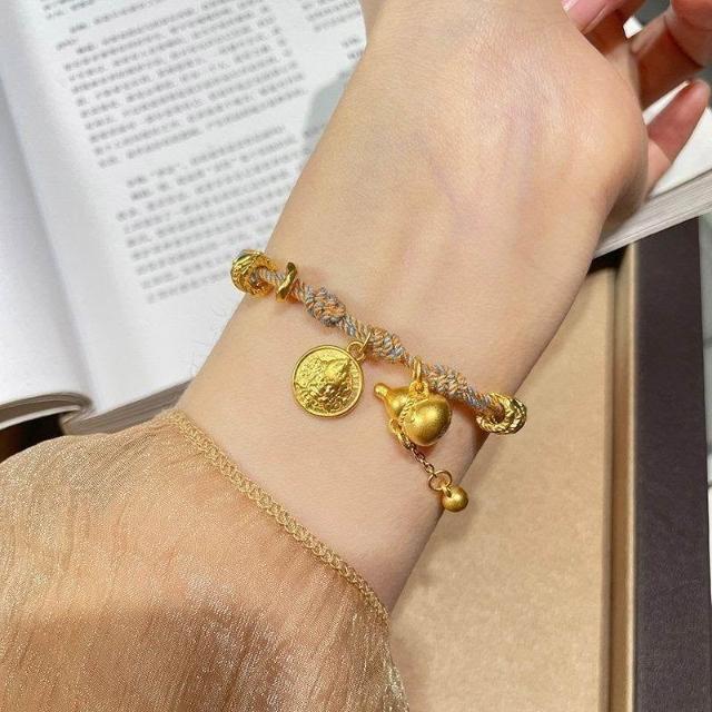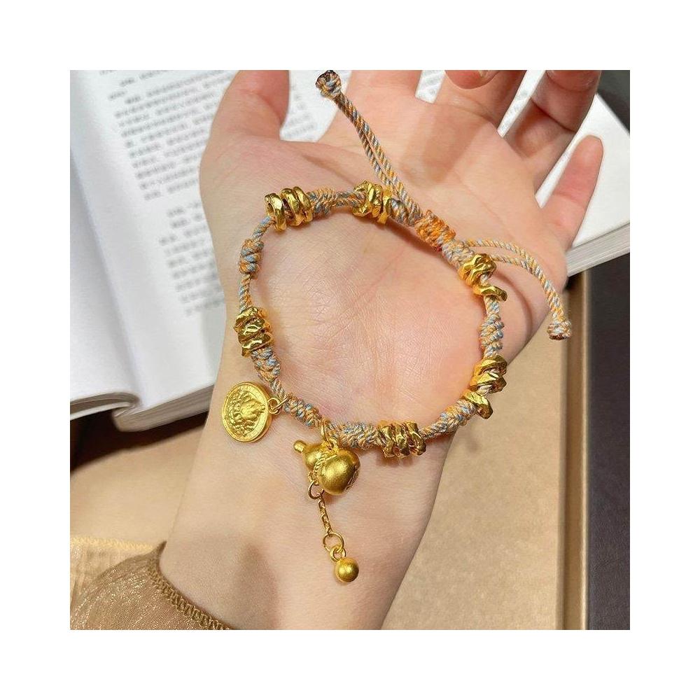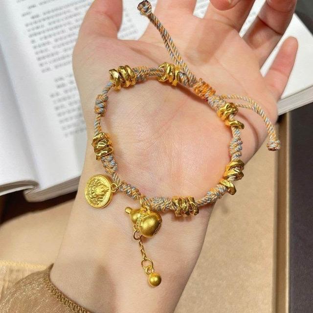 新中式黃財神葫蘆盤纏手鍊手工編織手繩金色復古配飾送閨蜜禮物