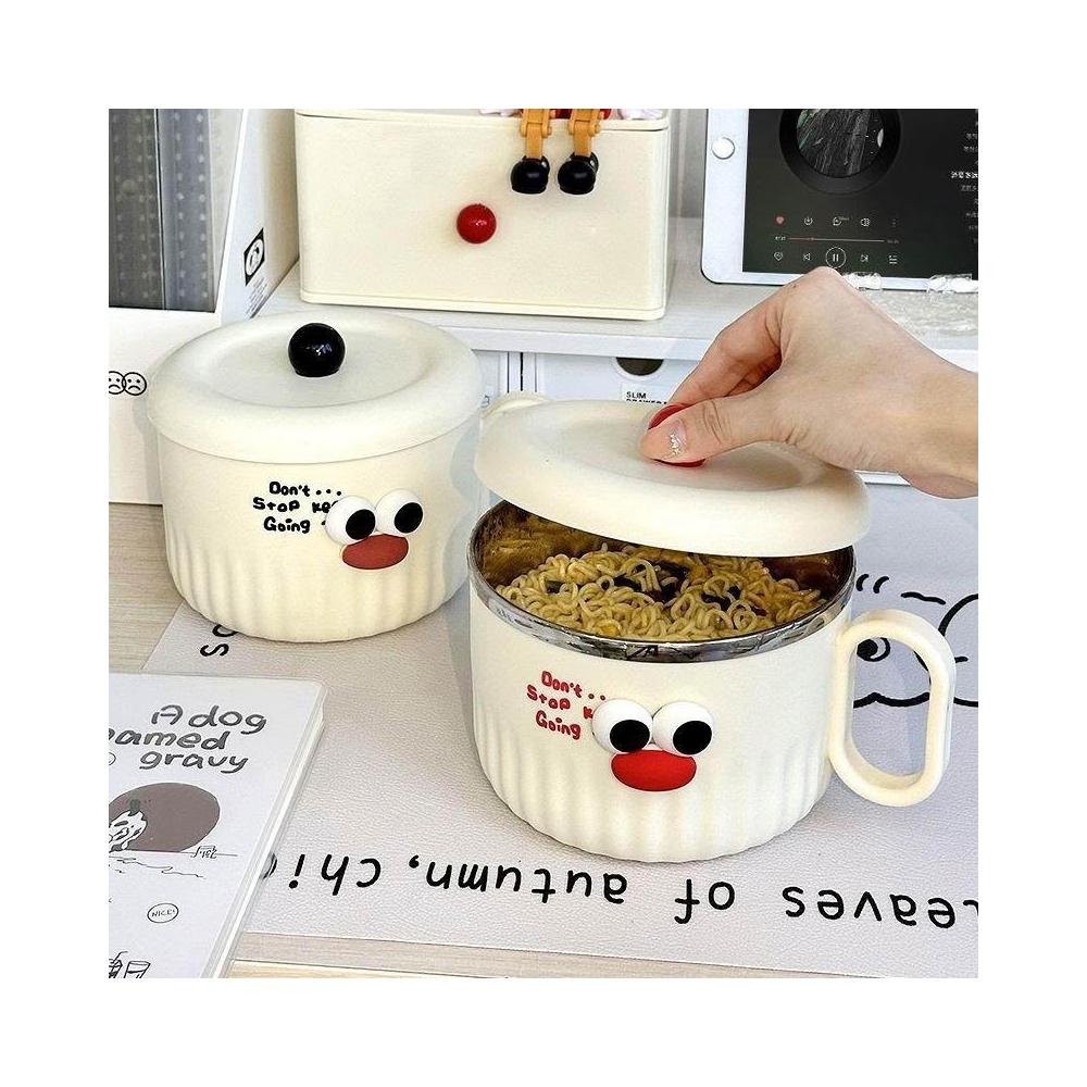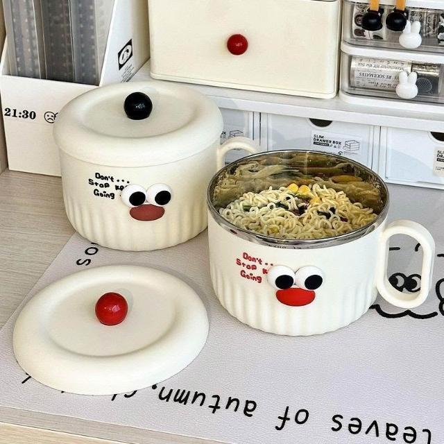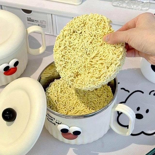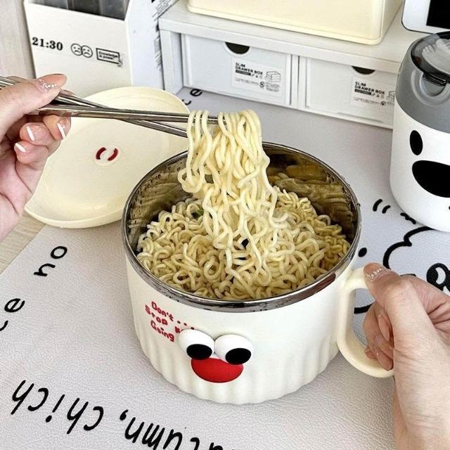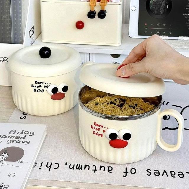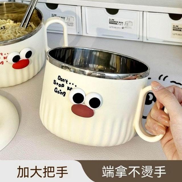 可愛泡麪碗304不鏽鋼學生飯盒宿舍個性上班個人專用帶手柄吃飯碗