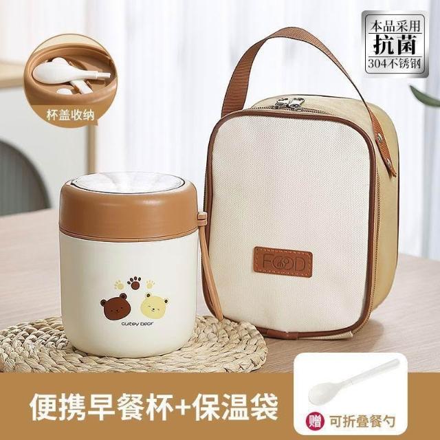 冬季豆漿杯子外帶上班族便攜早餐杯帶蓋勺隔夜燕麥杯保溫粥杯湯杯