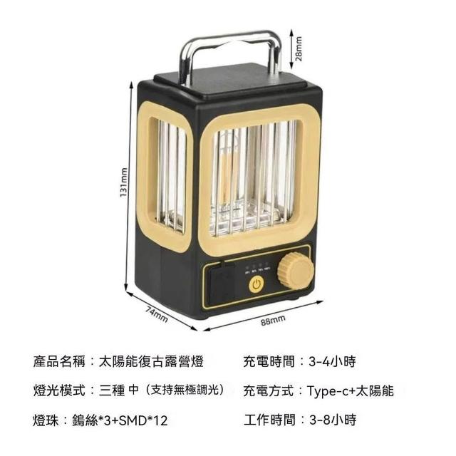 新款太陽能庭院燈露營無極調光充電營地燈帳篷燈鎢絲燈夜市照明燈