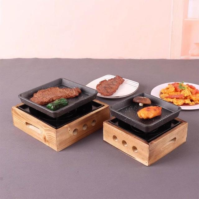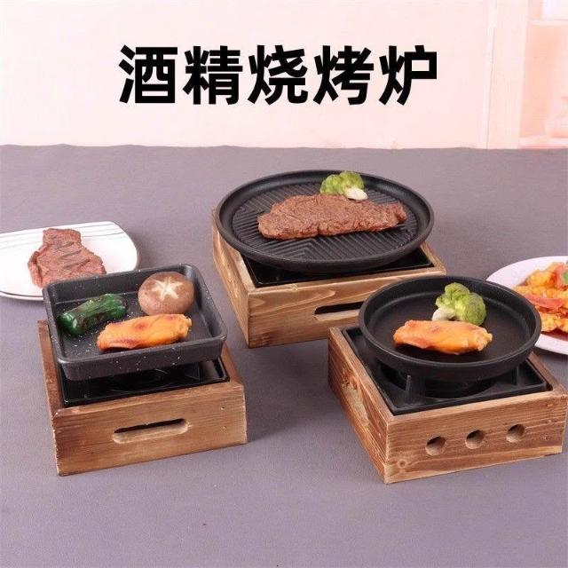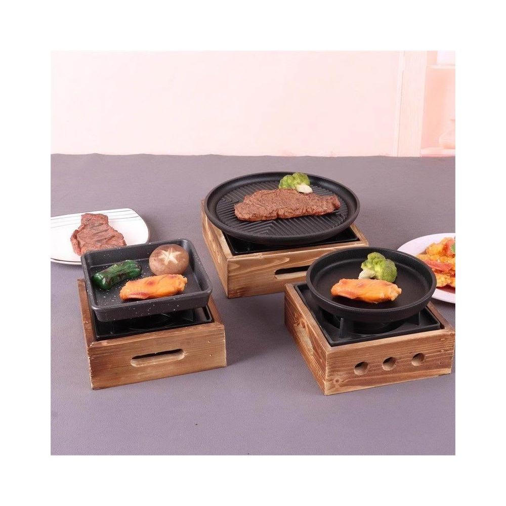韓式鑄鐵烤盤平底酒精加熱燒烤爐蠟燭保溫盤日式戶外牛排烤盤露營