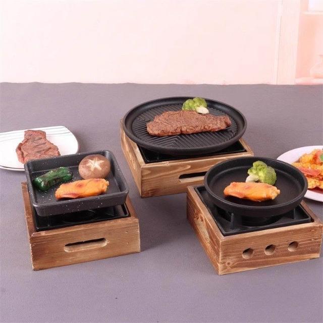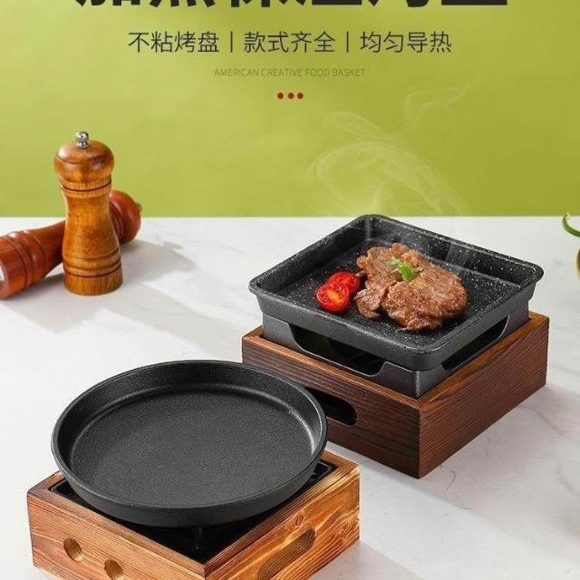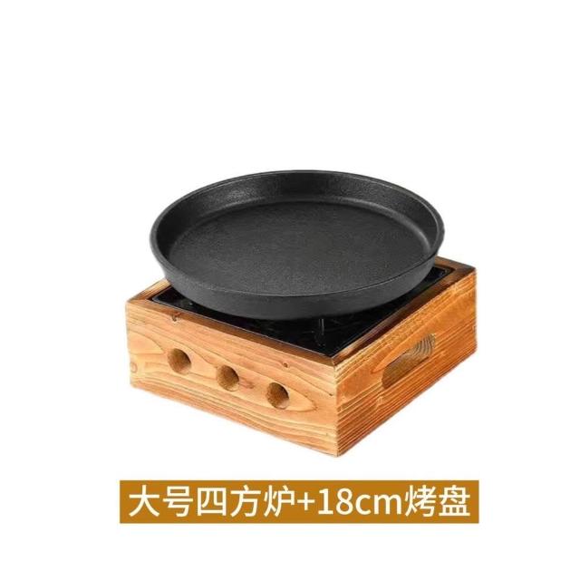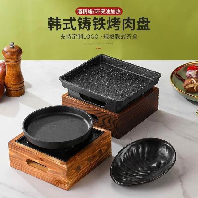 韓式鑄鐵烤盤平底酒精加熱燒烤爐蠟燭保溫盤日式戶外牛排烤盤露營