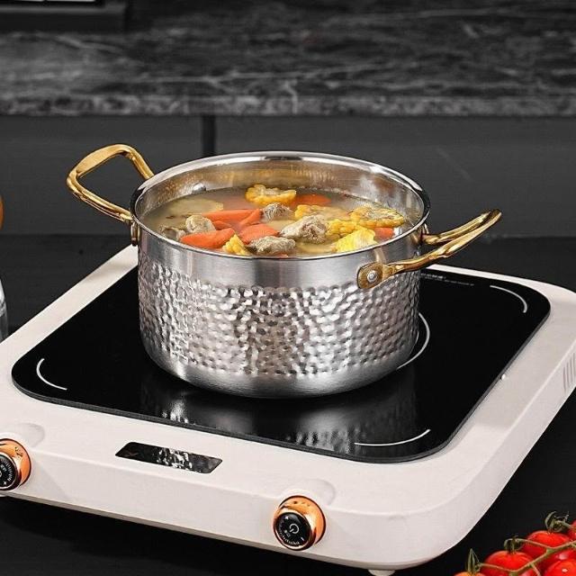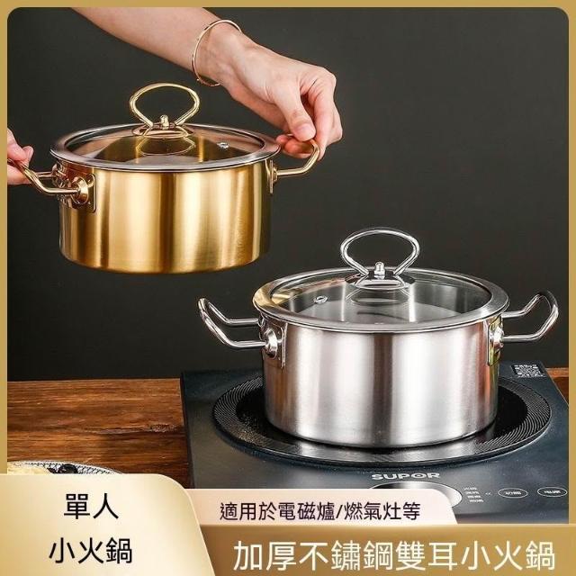 商用單人小火鍋 一人一鍋旋轉小鍋 電磁爐煤氣通用金色鍋