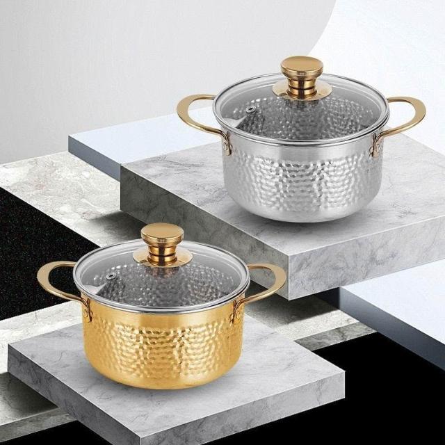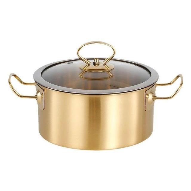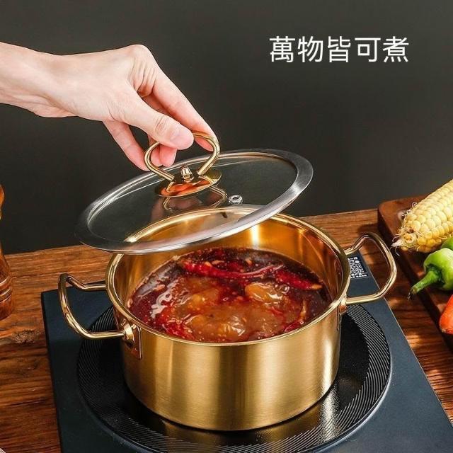 商用單人小火鍋 一人一鍋旋轉小鍋 電磁爐煤氣通用金色鍋