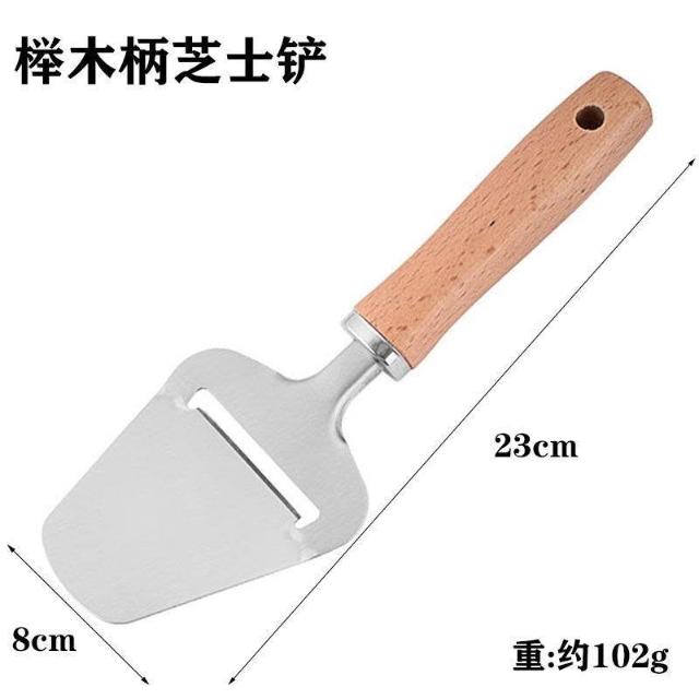 不鏽鋼滾輪披薩刀鏟兩件套全套商用廚房烘焙烹飪實木柄介柄切餅器