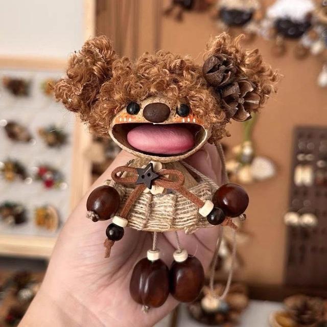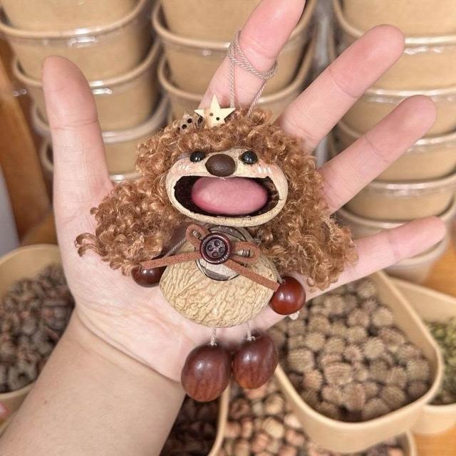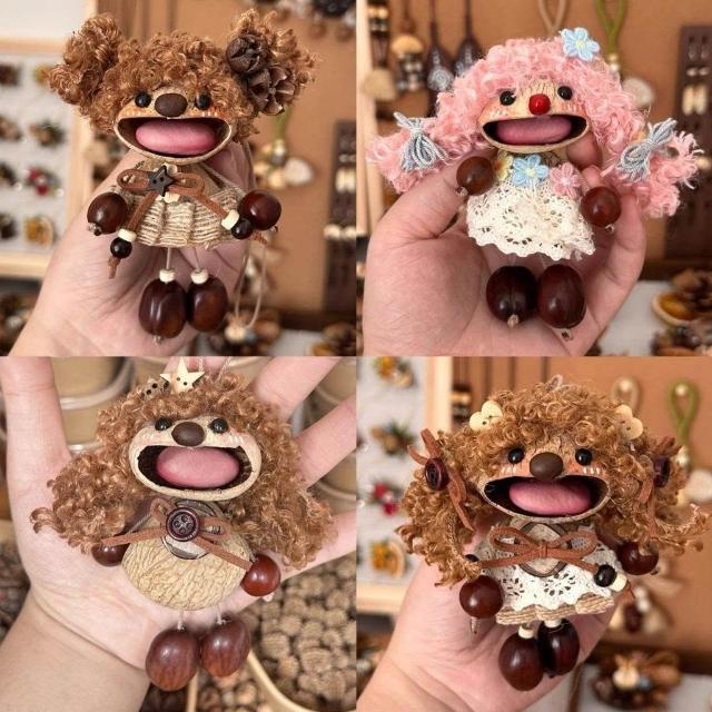 手作可愛女孩風鈴創意果殼包包搖鈴掛件成品手工植物種子禮物掛飾
