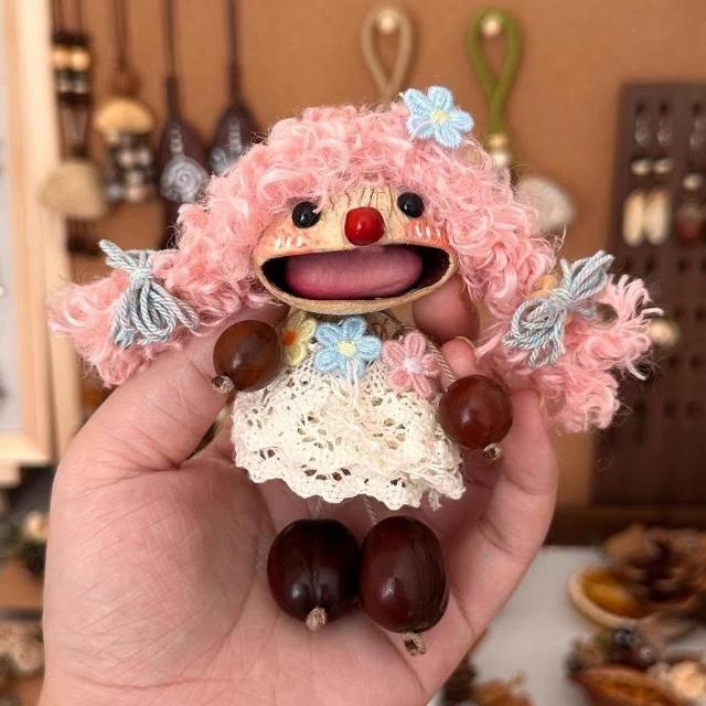 手作可愛女孩風鈴創意果殼包包搖鈴掛件成品手工植物種子禮物掛飾
