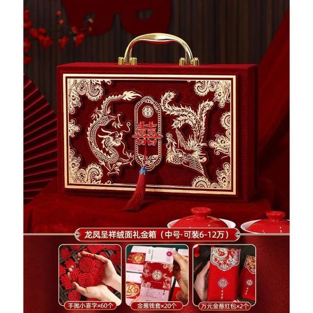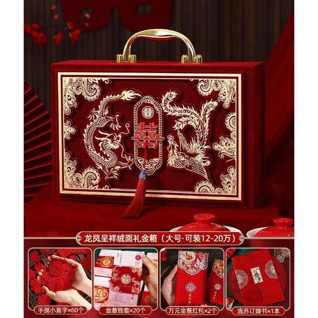 彩禮錢盒子訂婚禮金箱現金裝錢提親下聘禮聘金禮盒嫁妝20萬禮金盒