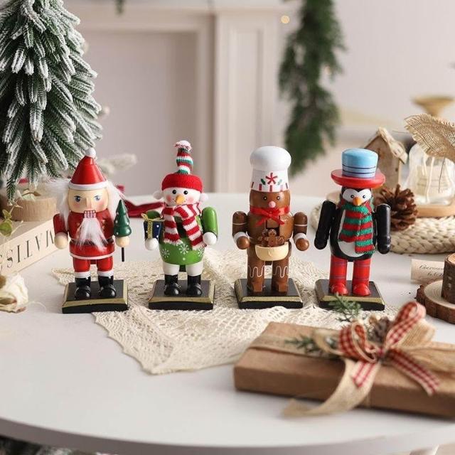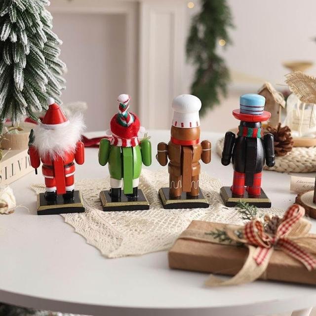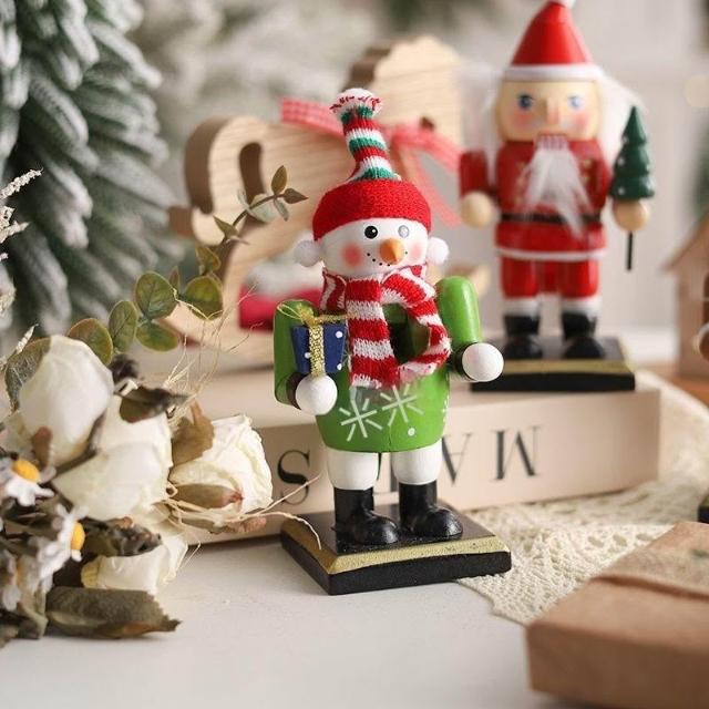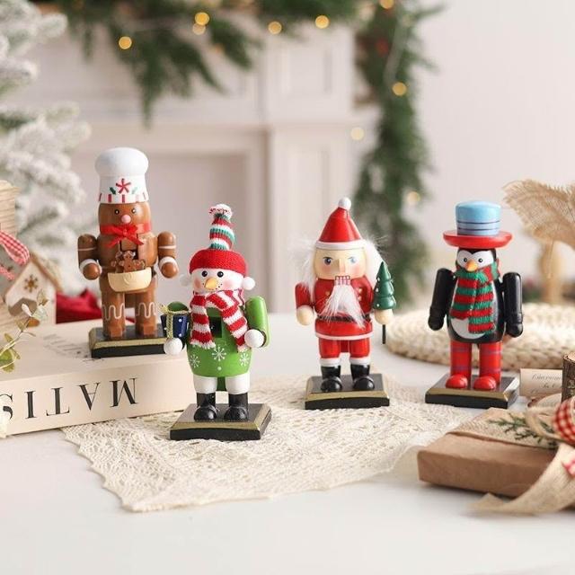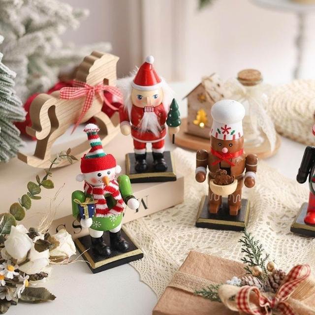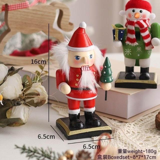 胡桃夾子木質擺件聖誕節裝飾品櫥窗桌面16cm聖誕老人卡通桌面擺件