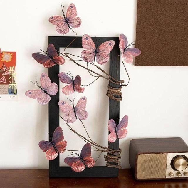 蝴蝶仿真花假花擺件客廳玄關桌面裝飾品復古民宿咖啡館軟裝道具
